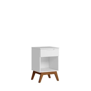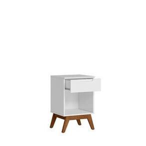 Mesa de Cabeceira Infantil Retrô 1 Gaveta Alpi Olivar Móveis Branco. A Mesa de Cabeceira Retrô Alpi possui um design com charme e elegância na gaveta, com um detalhe usinado no MDF para servir como puxador. Produzido em MDP e MDF de 15 mm, possui uma prateleira interna e uma gaveta. Os pés são chassi deixando o produto robusto e com classe. Ean: 7908308783911