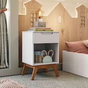 A Mesa de Cabeceira Retrô Sonhare possui um design com charme e elegância na gaveta, com um detalhe usinado no MDF para servir como puxador. Produzido em MDP e MDF de 15 mm, possui uma prateleira interna e uma gaveta. Os pés são chassi deixando o produto robusto e com classe. Acabamento da Gaveta: Pintura UV Acabamento da Prateleira: Pintura UV Acabamento dos Pés: Verniz Altura dos Pés: 18.6 Ambiente Principal: Quarto Infantil Complexidade da Montagem: Baixa: pode ser montado por uma pessoa sozinha Cor: Branco Cor do Produto: Branco Cor Flex: Não Cor Interna: Branco Escala de Brilho: Acetinado Escala de Brilho da Gaveta: Semi-Brilho Escala de Brilho da Prateleira: Semi-Brilho Gaveta com Chave: Não Itens Inclusos: 1 Mesa de Cabeceira Alpi, Kit Ferragens e Manual de Montagem Linha ou Coleção: Linha Manual de Montagem e Instalação: https://product-hub-prd.madeiramadeira.com.br/874923/documents/ce9fc601-0d24-4295-ae92-1ed19cdeeb27anualmontmesacabecralpicdr.pdf Material da Gaveta: MDF/MDP Material da Prateleira: MDP Material dos Pés: Madeira Maciça Material Principal: MDF/MDP modular: Não Montagem Flex: Não Necessita Montagem: Sim Origem do Produto: Nacional Pés Reguláveis: Não Peso: 10 Peso Máximo por Gaveta: 2 Peso Máximo por Prateleira: 4 Pet Friendly: Não Possui Espelho: Não Possui Nichos: Não Possui Pés: 04 Possui Portas: Não Possui Prateleiras: 01 Possui Vidro: Não Recomendações de Uso, Manutenção e Limpeza: Pano úmido. Não aplicar lustra móveis. Sapatas Niveladoras: Não Sistema de Montagem: Parafusos e Minifix. Suporta Até (kg): 10 Tipo de Corrediça da Gaveta: Metálica Simples Tipo de Madeira Maciça dos Pés: Pinus Tipo de Puxador da Gaveta: Embutido Ean: 7909903476710