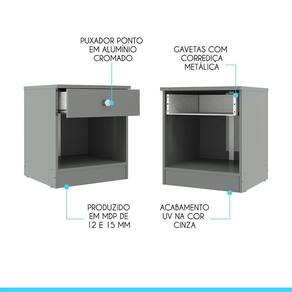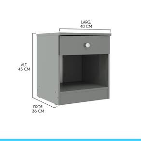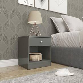 Mesa De Cabeceira London 1 Gaveta 40x45cm London Menu Móveis Cinza Voce merece o melhor quando se trata de moveis para sua casa e a escolha certa para atender todas as suas necessidades. Com um design atual, une versatilidade, conforto e beleza. Com uma gaveta e um nicho, voce tera muito espaco para manter tudo organizado e ao alcance das maos. Produzida com materiais de excelente qualidade, garantindo a sua resistencia e mantendo sua beleza e funcionalidade por muito tempo. O melhor em moveis no design atual aliando conforto, qualidade e otimos precos, so na Menu Moveis! Caracteristicas: Referencia: 6500 Material: MDP de 12 e 15 mm Acabamento: Pintura UV Brilho na cor Cinza Gavetas: 01 Nichos: 01 Gaveta com Corredica Metalica Puxador tipo Ponto em Aluminio Cromado