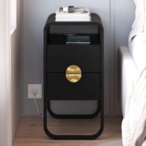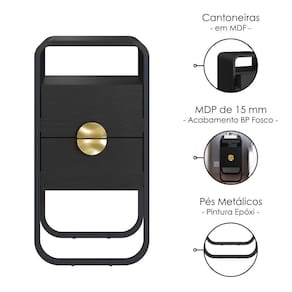 Mesa de Cabeceira Luna, idealizada a partir de formas orgânicas com cantos arredondados que se entrelaçam ao seu ambiente de repouso. Conta com estrutura em MDP de 15 mm com acabamento BP e pés metálicos (Pintura Epóxi) com sapatas reguláveis em plástico. Possui gavetas com corrediças telescópicas e puxadores em poliestireno estilo meia lua, além nicho superior, ambos suportam até 2kg cada. Adicionalmente, é constituída por cantoneiras em MDF. Produto será entregue em 01 volume.