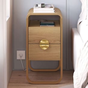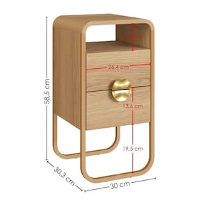 Mesa de Cabeceira Luna, idealizada a partir de formas orgânicas com cantos arredondados que se entrelaçam ao seu ambiente de repouso. Conta com estrutura em MDP de 15 mm com acabamento BP e pés metálicos (Pintura Epóxi) com sapatas reguláveis em plástico. Possui gavetas com corrediças telescópicas e puxadores em poliestireno estilo meia lua, além nicho superior, ambos suportam até 2kg cada. Adicionalmente, é constituída por cantoneiras em MDF. Produto será entregue em 01 volume.