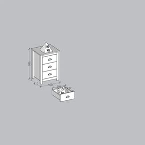 ESPECIFICAÇÕES TÉCNICAS:<Br> Matéria prima madeira maciça de pinus de reflorestamento;<Br> Pintura Acetinada Verniz PU e UV;<Br> Corrediças telescópicas;<Br> Puxadores metálicos em ouro envelhecido;<Br> Pés alongados em madeira;<Br> Peso máximo suportado pelas Gavetas 05kg distribuídos);<Br> Amplo espaço para armazenamento;<Br> Isolamento de peças com manta de polietileno expandido (Isomanta);<Br> Possui manual de montagem;<Br> Sistema de montagem simples e rápida.<Br><Br>