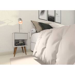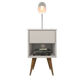 Mesa de Cabeceira MDF Pés Palitos com 1 Gaveta e 1 Nicho PlanCasa - Off White