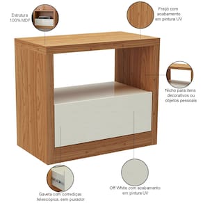 Peças na tonalidade Freijó e Off White com acabamento em pintura UV.