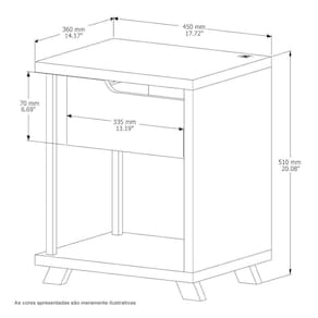 Transforme seu quarto em um oásis de conforto e estilo com a nossa mesa de cabeceira. Esta peça elegante não só complementa sua cama, mas também oferece funcionalidade! Dimensões do Produto Montado: Altura: 54 cm Largura: 45 cm Profundidade: 36 cm Detalhes: - Suportes metálicos - Possui um ponto de tomada - Gaveta para organização Informações adicionais: - Verifique o tamanho e os detalhes do produto antes de realizar a compra. - As fotos são meramente ilustrativas. Objetos decorativos que aparecem nas imagens não acompanham o produto. - A transportadora entregará o produto no portão e/ou portaria da residência, ou ainda, somente no andar térreo, em caso de prédios, do endereço de entrega. - Avaliar a mercadoria no ato do recebimento e recusar em caso de divergência ou danos. Ean: 7908472024988
