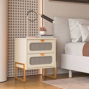 Tipo: Mesa de Cabeceira Modelo: Titanium Cor: Off White Cor da Base: Dourado Estrutura: MDP com acabamento em pintura UV Pés: Metal com pintura eletrostática Possui 2 gavetas: Corrediças metálicas Frentes decorativas em padrão rattan Puxadores embutidos Design: Moderno, funcional e elegante Garantia: 3 meses contra defeitos de fabricação