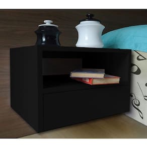 Mesa de Cabeceira Suspenso Laqueado com Nicho e Gaveta. Para você de deseja Decorar seu Quarto com Móvel versátil e Design exclusivo! Móvel alto padrão de Acabamento. Material: MDF Laqueado Gaveta com Trilhos Telescópicos Cor: Preto Altura: 32 cm Largura: 45 cm Profundidade: 35 cm Modelo: Suspenso/ ParedeDisponível também nas cores: Branco, Preto, Amarelo, Azul, Vermelho, Coral e Off White (Consulte nossos outros anúncios)Somos FabricantesInstalação: Acompanha parafusos e buchas para fixação. O produto será entregue Montado. (não realizamos instalação). Conteúdo da embalagem: 01 Mesa de Cabeceira Atenção: Item composto apenas pela Mesa de Cabeceira, itens decorativos NÃO acompanham o produto. do produto: Não nos responsabilizamos pelo transporte por escadas/elevadores, guincho ou içamento deste produto. Qualquer despesa é de responsabilidade do cliente. Cuidados: Para conservar aspectos e garantir a durabilidade do produto: utilizar pano macio e levemente umedecido. Nunca use solventes ou abrasivos.