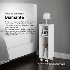 Mesa De Cabeceira Pequena Com Rodinhas 20x20x60cm Branco Quarto Sala A Mesa de Cabeceira Safira Branco com Rodinhas é o que faltava para dar aquele toque especial na decoração da sua casa. Ideal para ambientes pequenos e espaços compactos, a mesa de cabeceira Safira ocupa pouco espaço, possui compartimentos para decoração ou objetos pessoais, deixando tudo o que você precisa o seu alcance.