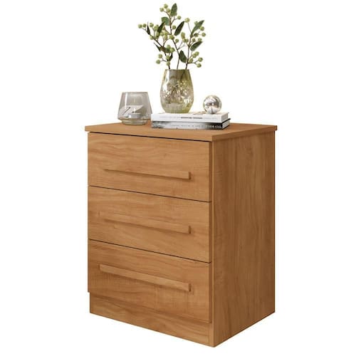 Mesa De Cabeceira Perça 3 Gavetas - Benetil Cinamomo A Mesa de Cabeceira Perca traz charme e elegancia ao ambiente com seu design sofisticado. Possui tres gavetas com corredicas telescopicas que facilitam o acesso e mantem tudo muito bem-organizado, sendo uma excelente opcao de custo-beneficio. Fabricada com a linha MDP Perfect, alia sustentabilidade e inovacao tecnologica para proporcionar durabilidade e facil limpeza, elevando o toque de sofisticacao do mobiliario. Com pintura UV de alta resistencia, e pratica para limpeza e ecologicamente correta, pois utiliza madeira de reflorestamento e contribui para a preservacao ambiental. Caracteristicas: Material Principal Mdp Espessura Da Chapa: 15 Mm Escala De Brilho: Semi Brilho Acabamento: Pintura UV Sistema De Montagem: Parafuso, Cavilha E Cantoneiras Metalicas Quantidade de Gavetas: 03 Corredicas: Telescopicas