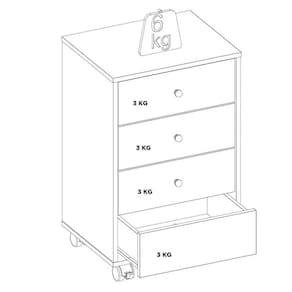 ESPECIFICAÇÕES: • Estrutura em MDP • 4 Gavetas • Corrediças metálicas • Puxadores de plástico ABS • 4 Rodízios em PVC
