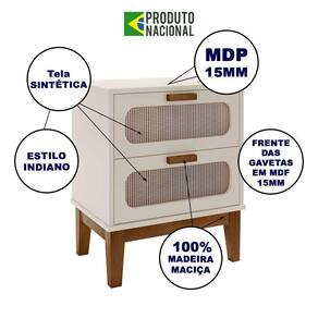 AS IMAGENS SÃO MERAMENTE ILUSTRATIVAS E PODEM SOFRER VARIAÇÕES DE COR E PEQUENOS DETALHES DE ACORDO COM O SEU MONITOR, ILUMINAÇÃO DO AMBIENTE E ATÉ MESMO A SUA PERCEPÇÃO de Cabeceira Quarto Base Madeira 2 Gavetas 45 Cm Tela Indiana Santorini Off White