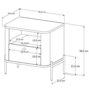 Conta com 1 gaveta com corrediças telescópicas e puxador em metal, oferecendo espaço eficiente para seus objetos essenciais.