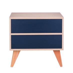 Mesa de Cabeceira Retrô Modelo Bréscia na cor Carvalho Treviso (Madeira Clara) e portas Azul Marinho traz organização com estilo para o seu quarto. Possui lindos pés torneados em diagonal.