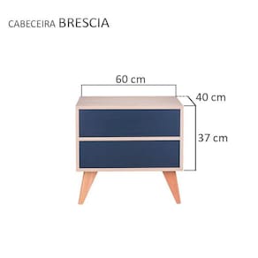 Mesa de Cabeceira Retrô Modelo Bréscia na cor Carvalho Treviso (Madeira Clara) e portas Azul Marinho traz organização com estilo para o seu quarto. Possui lindos pés torneados em diagonal.