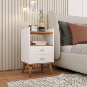 Com pés em madeira maciça estilo retrô, esta Mesa de Cabeceira é perfeita para as laterais da sua cama. Possui duas gavetas com amplo espaço interno e puxadores cromados. As corrediças das gavetas são metálicas, super resistentes e a sua estrutura é fabricada em MDF/MDP, o mesmo material utilizado em móveis planejados. Além de tudo isso, o revestimento é todo em BP, que é um material de acabamento luxo e anti-risco.