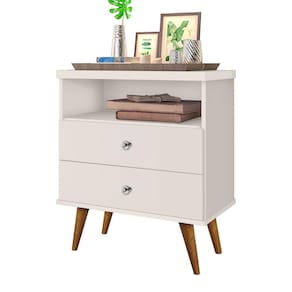 A Mesa de Cabeceira Retrô Status 2 Gavetas - JeA Móveis é a escolha ideal para complementar a decoração do seu ambiente, além de agregar charme à sua decoração. Com duas gavetas e um nicho, ele permite que você tenha seus objetos pessoais sempre à mão, além de diversos outros itens acomodados de forma organizada. Seu estilo retrô fica por conta dos seus pés palito, que agregam requinte e bom gosto ao seu dormitório.