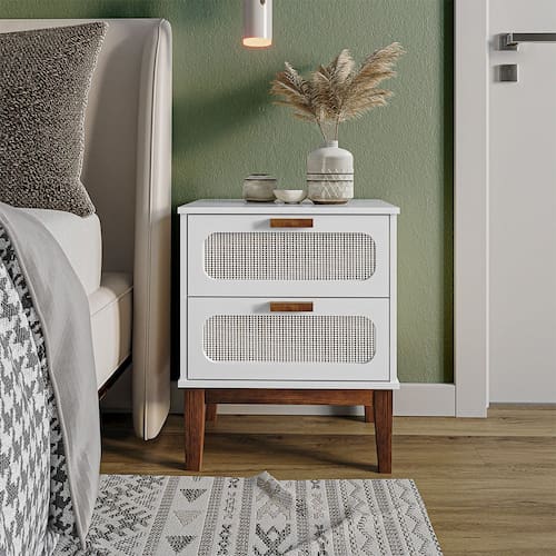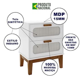 Tipo: Mesa de Cabeceira Modelo: Santorini Cor: Branco Tela Indiana Sintética