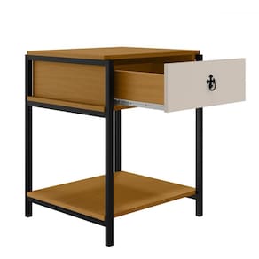 O(a) Mesa de Cabeceira Sevilha 1 Gaveta 1 Prateleira Preto/Natural/Off White - Art Panta é produzido em MDF, MDP e Aço na escala de brilho Semi-Brilho, e possui um grau de dificuldade de montagem: Médio.