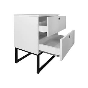 Mesa de Cabeceira Slim Branco 2 Gavetas Base Metálica Preta - Vallisa Decor A Mesa de Cabeceira é um elemento indispensável para complementar o espaço ao lado da cama, oferecendo praticidade e elegância. Com espaço para itens essenciais como livros, óculos ou uma luminária, ele proporciona organização e conforto ao seu ambiente de descanso. Além disso, sua superfície é perfeita para decorar com objetos que expressem sua personalidade, adicionando um toque especial ao seu quarto. Dimensões: - Altura: 61cm; - Largura: 50cm; - Profundidade: 34,5cm; - Altura Base: 20,5cm; - Largura Base: 48cm; Medidas da Gaveta: - Altura Gaveta Interna: 15cm; - Largura Gaveta Interna: 41cm; - Profundidade Gaveta Interna: 32cm; Especificação do Produto: - Material: MDP BP; - Revestimento: Melanima BP; - Cor: Branco; - Pés: Aço Carbono 20x20 (Pintura Eletroestática); - Gaveta: 2 (Com puxador vazado); Necessita Montagem: Sim (acompanha manual). O produto é enviado desmontado, porém é de montagem fácil, os parafusos acompanham o produto e você vai precisar de uma parafusadeira; - Garantia: 3 meses contra defeitos de fabricação. Você irá receber: 01 volume. Observações Relevantes: - Instruções de Limpeza: Utilizar um pano limpo e levemente úmido, não utilizar produtos abrasivos, álcool ou qualquer outro produto químico; - Todos os produtos vão embalados com total segurança; - Produto para uso residencial em ambiente interno, não devendo ficar exposto diretamente ao sol, calor e umidades excessivas, não devendo ficar em área externa; - Pode haver alguma diferença de tonalidade entre a imagem e o produto real, por conta do tratamento de imagens e a calibração de cores do seu monitor; - Confira as dimensões do produto no momento da compra e certifique-se de que passará normalmente por escadas, elevadores, portas e corredores; - As imagens são meramente ilustrativas, não acompanham objetos de decoração; - Não nos responsabilizamos no ato da entrega por subir escadas/elevadores, montagens, desmontagens, instalações de produtos; - As orientações acima, evita-se futuros desagrados ou imprevistos com a entrega do produto; - Caso ocorra despesas adicionais, serão de responsabilidade do cliente.