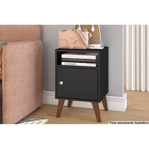 Mesa de Cabeceira Solteiro RT3145 c/ 1 Porta Preto - Movelbento