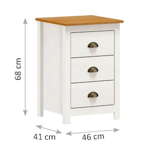 Características: Estrutura em Madeira Maciça de Pinus Pintura Acetinada Verniz PU e UV Corrediças Telescópicas Puxadores Metálicos em Ouro Envelhecido Pés Alongados em Madeira Amplo Espaço para Armazenamento As Gavetas Suportam um Peso Máximo Distribuído de 5Kg