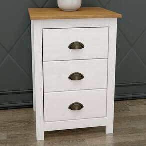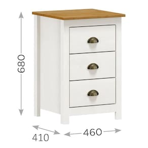 A Mesa de Cabeceira Topázio 3 Gavetas da Finestra Móveis é a combinação perfeita entre elegância clássica e funcionalidade. Produzida em madeira maciça de pinus de reflorestamento, conta com acabamento em pintura acetinada com verniz PU e UV, garantindo resistência e um visual sofisticado. Possui 3 gavetas com corrediças telescópicas, cada uma com capacidade para até 5kg distribuídos, ideais para organizar objetos pessoais, documentos ou itens de uso diário. Os puxadores metálicos em ouro envelhecido conferem um toque de charme e requinte ao móvel, enquanto os pés alongados em madeira maciça completam o design com estilo e estabilidade. É uma peça versátil e durável, perfeita para compor o quarto com praticidade, organização e beleza atemporal.