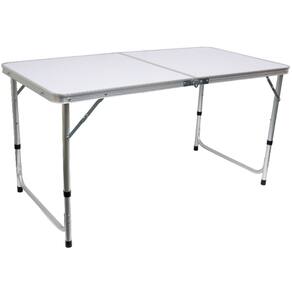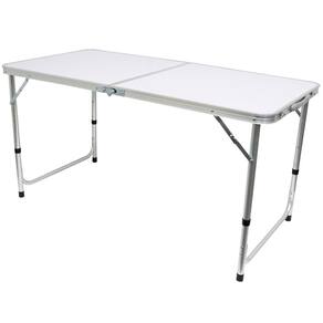 Uma mesa super prática e fácil de montar e desmontar em qualquer lugar, sendo facilmente transportada no Carro ou até mesmo a pé. Mesa em cor Branco e Cinza mesclado na tampa e estrutura em Alumínio, com duas alturas podendo ser usada em vários ambientes ou ocasiões conforme a necessidade para o uso, super versátil e prática, resistente e alta durabilidade, sendo um ótimo investimento de custo-benefício. E ainda acompanha 4 bancos que podem ser guardados dentro da mesa para o transporte.