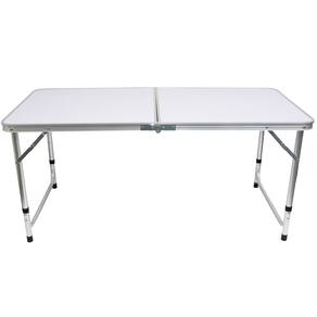 Uma mesa super prática e fácil de montar e desmontar em qualquer lugar, sendo facilmente transportada no Carro ou até mesmo a pé. Mesa em cor Branco e Cinza mesclado na tampa e estrutura em Alumínio, com duas alturas podendo ser usada em vários ambientes ou ocasiões conforme a necessidade para o uso, super versátil e prática, resistente e alta durabilidade, sendo um ótimo investimento de custo-benefício. E ainda acompanha 4 bancos que podem ser guardados dentro da mesa para o transporte.