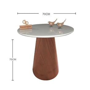 Mesa De Canto Cone Amadeirado Com Tampo Vidro 70cm Off White 70cm
