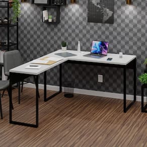 - A saia possui 20cm de altura garantindo ótima estabilidade a mesa Produto Montado: Sim Acompanha Manual de Instalação: Sim Ambiente Principal: Escritório codigo_ean: 7798442417823 Complexidade da Montagem: Baixa: pode ser montado por uma pessoa sozinha Cor: Branco Cor do Produto: Branco Cor Interna: Branco Dobrável: Não Escala de Brilho: Semi-Brilho Espessura do Tampo: 30 mm Formato: Em L Itens Inclusos: 1 Escrivaninha, Manual de Montagem e Kit Ferragens Linha ou Coleção: Office Manual de Montagem e Instalação: https://product-hub-prd.madeiramadeira.com.br/866870/documents/a7807bef-bbd0-46b0-adfb-3b7de6920693807mesaangularpEretangular.pdf Material da Estrutura: Aço Material do Tampo: MDP Material dos Pés: Aço Material Principal: MDP Montagem Flex: Não Necessita Montagem: Sim Origem do Produto: Nacional Pés com Regulagem de Altura: Não Pés Reguláveis: Não Peso: 28 kg Possui Painel: Não Possui Passa Cabos: Não Possui Porta Objetos: Não Possui Portas: Não Possui Prateleiras: Não Possui suporte para CPU: Não Possui Suporte para Teclado: Não Possui Vidro: Não Recomendações de Uso, Manutenção e Limpeza: Limpeza com pano úmido, sem produtos químicos Sapatas Niveladoras: Sim Sistema de Montagem: Parafusos, cavilha e minifix Suporta Até (kg): 85 kg