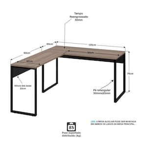 - A saia possui 20cm de altura garantindo ótima estabilidade a mesa Produto Montado: Sim Acompanha Manual de Instalação: Sim Ambiente Principal: Escritório codigo_ean: 7798442417205 Complexidade da Montagem: Baixa: pode ser montado por uma pessoa sozinha Cor: Nogal Cor do Produto: Nogal Cor Interna: Nogal Dobrável: Não Escala de Brilho: Semi-Brilho Espessura do Tampo: 30 mm Formato: Em L Itens Inclusos: 1 Escrivaninha, Manual de Montagem e Kit Ferragens Linha ou Coleção: Office Manual de Montagem e Instalação: https://product-hub-prd.madeiramadeira.com.br/866854/documents/4bd17a84-070f-4902-a717-5c9aa1b44696743mesaangularpEretangular.pdf Material da Estrutura: Aço Material do Tampo: MDP Material dos Pés: Aço Material Principal: MDP Montagem Flex: Não Necessita Montagem: Sim Origem do Produto: Nacional Pés com Regulagem de Altura: Não Pés Reguláveis: Não Peso: 29 kg Possui Painel: Não Possui Passa Cabos: Não Possui Porta Objetos: Não Possui Portas: Não Possui Prateleiras: Não Possui suporte para CPU: Não Possui Suporte para Teclado: Não Possui Vidro: Não Recomendações de Uso, Manutenção e Limpeza: Limpeza com pano úmido, sem produtos químicos Sapatas Niveladoras: Sim Sistema de Montagem: Parafusos, cavilha e minifix Suporta Até (kg): 85 kg