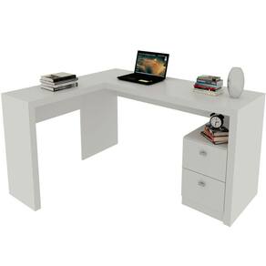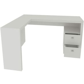 Mesa De Canto Para Escritório Em L Angular Com 2 Gavetas Branco