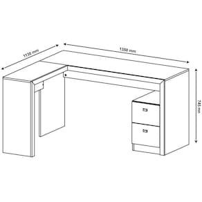 Dimensões da Mesa de Canto para Escritório em L Angular com 2 Gavetas: