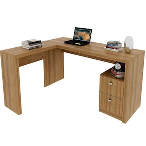Características da Mesa de Canto para Escritório em L Angular com 2 Gavetas: