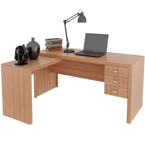 Acompanha o produto: - 1 x Mesa de Canto para Escritório em L Angular com 3 GavetasManual de MontagemAcessórios para Montagem