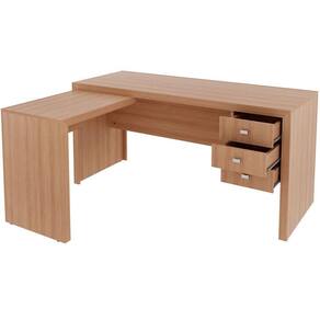 Mesa De Canto Para Escritório Em L Angular Com 3 Gavetas Amêndoa A Mesa de Canto para Escritório em formato L é ideal para quem busca funcionalidade e aproveitamento inteligente do ambiente. Seu formato permite acomodar equipamentos e materiais de trabalho com eficiência, otimizando espaços compactos ou compondo estações de trabalho completas. Aproveite esse e outros produtos incríveis só aqui na Casa Chick! Dimensões da Mesa de Canto para Escritório em L Angular com 3 Gavetas: - Altura: 74,5 cm - Largura: 154,8 cm - Profundidade: 126,5 cm