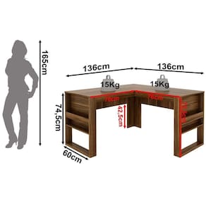 Mesa De Canto Para Escritório Em L Angular Detalhe Ripado Nogal/preto A Mesa de Canto para Escritório em formato L é ideal para quem busca funcionalidade e aproveitamento inteligente do ambiente. Seu formato permite acomodar equipamentos e materiais de trabalho com eficiência, otimizando espaços compactos ou compondo estações de trabalho completas. Aproveite esse e outros produtos incríveis só aqui na Casa Chick! Dimensões da Mesa de Canto para Escritório em L Angular Detalhe Ripado: - Altura: 74,5 cm - Largura: 136 cm - Profundidade: 60 cm