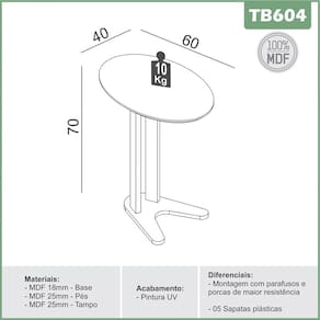 Itens Inclusos: 1 Mesa de Canto (TB604)