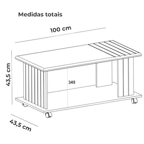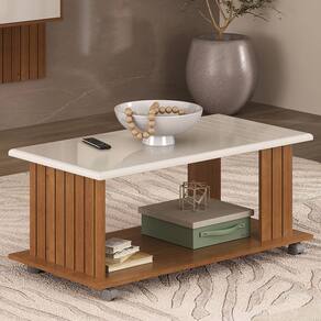A Mesa de Centro apresenta um design funcional e marcante para sua sala de estar. Sua estrutura é composta por MDP de 15 mm e tampo em MDF de 25 mm, com capacidade para suportar até 13 kg (sendo 8 kg no tampo e 5 kg na base). Tampo com bordas arredondadas e frisos delicados (em baixo relevo), detalhes ripados na lateral da estrutura (em baixo relevo) e rodízios pláticos (sem travas) já embutidos. Acabamento em pintura UV texturizada (estrutura fosca e tampo brilho) que oferece maior durabilidade e fácil limpeza. Este móvel chegará em sua casa separado em 01 volume.