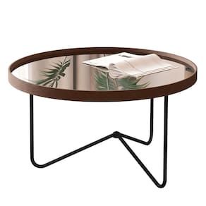 Seu tampo espelhado de 4 mm reflete elegância, enquanto as bordas em material sintético e os pés metálicos garantem resistência e leveza visual.