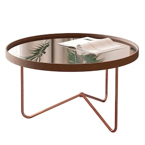 Seu tampo espelhado de 4 mm reflete elegância, enquanto as bordas em material sintético e os pés metálicos garantem resistência e leveza visual.