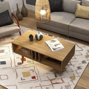 Mesa De Centro Amêndoa Mesa de Centro Amêndoa - Mesa de Centro com Pé Palito e Nichos Estilo Retrô e Funcionalidade para sua Sala! Adicione charme e organização ao seu ambiente com essa mesa de centro prática, resistente e ecologicamente correta.