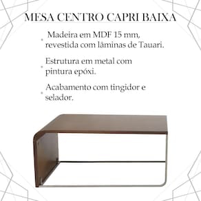 Mesa De Centro Baixa Madeira Pinhão Base Metal, é um item indispensável na sua decoração, por compor funcionalidade e charme para tornar o seu ambiente muito mais elegante. Estrutura em metal com pintura epóxi e MDF 15 mm revestido em lâmina tauari. Composta por madeira em MDF, produzido em lâmina de tauari e acabamento com tingidor e selador, e sua base é reforçada com pés em metal com pintura epóxi. Suporta até 30 Kg distribuídos. Uma peça robusta, arrojada e resistente, que combina facilmente com qualquer tipo de decoração. Este móvel chegará em sua casa separado em 01 volume.