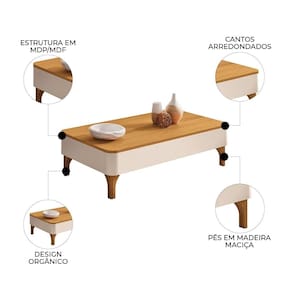 Mesa de Centro Baixa Para Sala Pé Madeira Thalia Off/Cinamomo H01 - Mpozenato