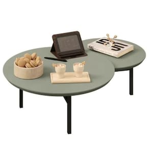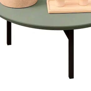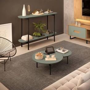 - Design moderno e versátil; - Acabamento de alta qualidade; - Material produzido em MDF; - Pés metálicos pretos; - Pintura dos pés epóxi; - Cor alecrim; - Seus dois tampos são chanfrados e redondos;