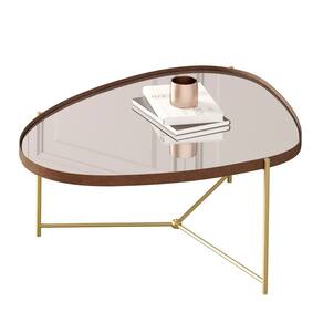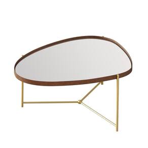 Mesa de Centro com Borda em Couro Sintético Espelho e Pés em Ferro Alamanda Castanho/Dourado - Marrom