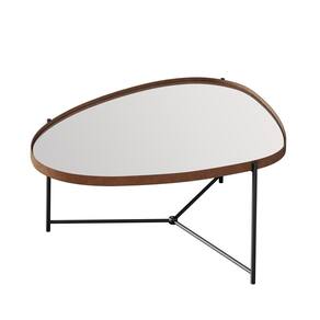 A mesa de centro orgânica alamanda contém a borda em couro sintético com 0,4 cm de altura, espelho e pés em ferro na cor preto.