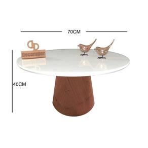 Mesa de Centro com Vidro 70cm e Base Cone Envernizada para decoração de ambiente