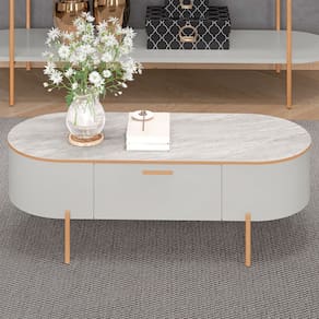 Com os pés metálicos robustos que evocam a força do design contemporâneo, essa mesa de centro traz uma estrutura que se destaca em qualquer ambiente. O contorno e superfície ovalados transmitem uma sensação acolhedora e convidativa, perfeita para reunir amigos e familiares. Mas o que realmente a torna única é a gaveta discreta que mantém seu espaço sempre organizado. Ideal para armazenar controles remotos, revistas ou pequenos objetos, ela combina praticidade e estilo.