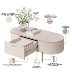 Com os pés metálicos robustos que evocam a força do design contemporâneo, essa mesa de centro traz uma estrutura que se destaca em qualquer ambiente. O contorno e superfície ovalados transmitem uma sensação acolhedora e convidativa, perfeita para reunir amigos e familiares. Mas o que realmente a torna única é a gaveta discreta que mantém seu espaço sempre organizado. Ideal para armazenar controles remotos, revistas ou pequenos objetos, ela combina praticidade e estilo.